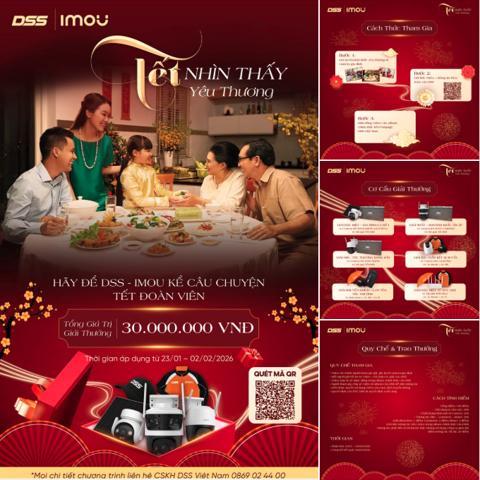 Với mong muốn lưu giữ và lan tỏa những câu chuyện giản dị nhưng giàu cảm xúc, DSS & Imou phát động cuộc thi video “Tết nhìn thấy yêu thương”, khuyến khích các gia đình chia sẻ những khoảnh khắc đời thường được ghi lại từ camera. Cuộc thi không đặt nặng việc thể hiện không khí Tết, mà hướng đến việc tôn vinh giá trị gia đình và sự gắn kết trong những khoảnh khắc rất thật.